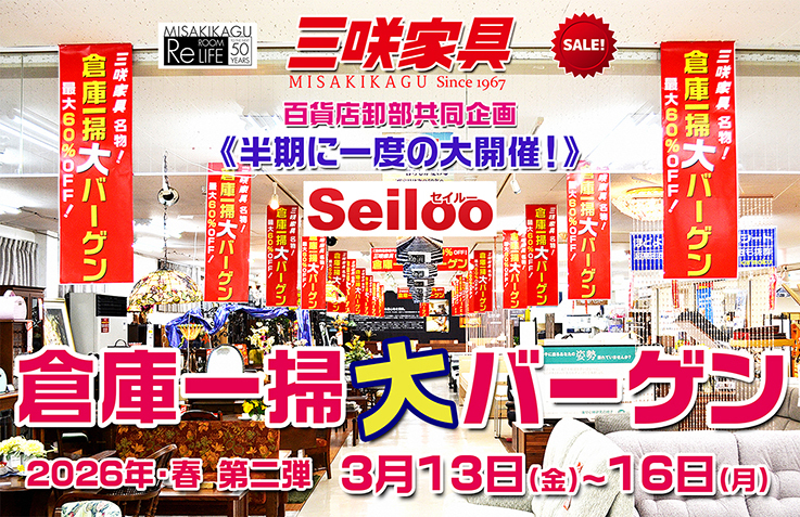 2026年・春「倉庫一掃 大バーゲン」第二弾を開催します!