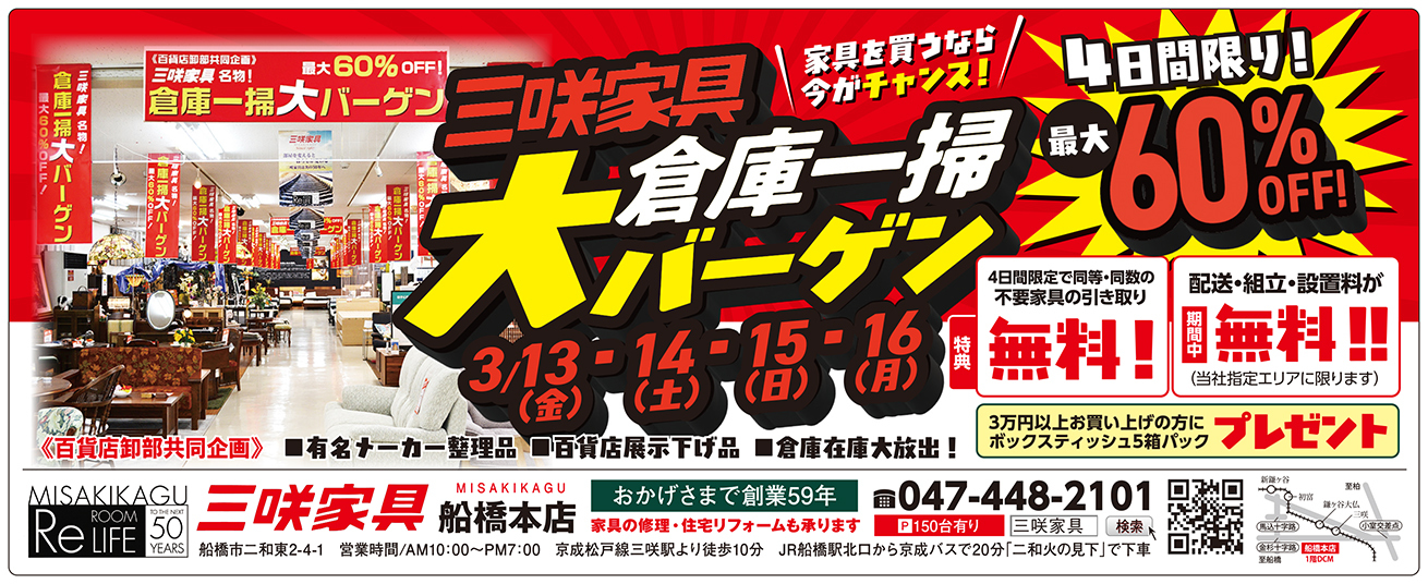 三咲家具・船橋本店 047-448-2101 まで